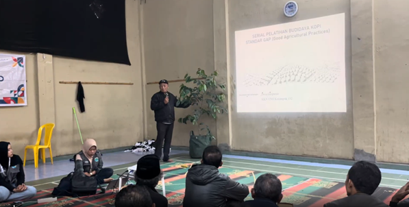 Narasumber kegiatan, Yamidi, memaparkan teknik budidaya kopi, pemangkasan, hingga perhitungan potensi keuntungan usaha tani. “Kopi berpeluang menjadi komoditas unggulan karena kondisi alam Giripurno mendukung,” ujarnya. Selain kopi, alpukat diperkenalkan sebagai tanaman tahunan dengan perakaran kuat untuk membantu stabilitas tanah sekaligus bernilai ekonomi. Di akhir kegiatan, panitia membagikan bibit kopi dan bibit alpukat untuk ditanam di lahan masing-masing.